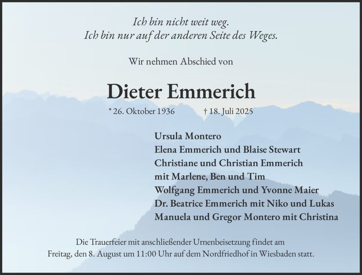 Mein väterlicher Freund und Bruder, Dieter Emmerich, hat seine irdischen Werkzeuge niedergelegt. Das Hohe Licht leuchte ihm!