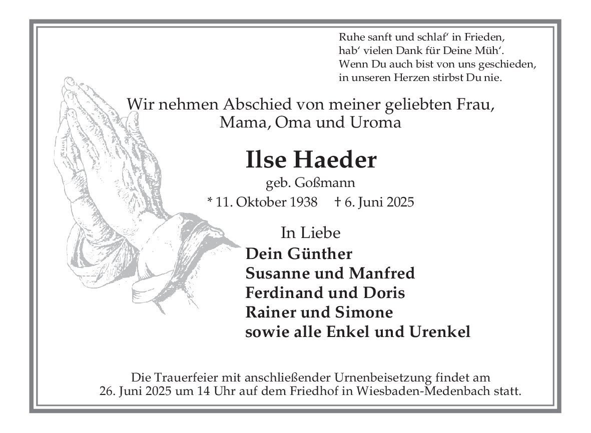 66 Jahre wart ihr zusammen und nun wacht Ilse von oben über Dich.