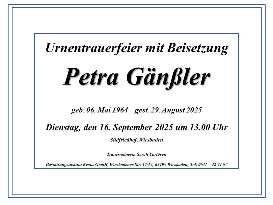 mit tiefem Bedauern habe ich vom Verlust deiner geliebten Frau erfahren. In dieser schweren Zeit möchte ich Dir mein aufrichtiges und herzliches Beileid aussprechen. Die herzliche Art von Petra und ihr warmes Lächeln werden mir immer in Erinnerung bleiben. Ich wünsche Dir von Herzen ganz viel Kraft, Trost und Halt in dieser schweren Zeit.