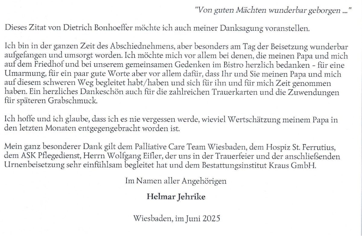 Sprechen Sie im Kondolenzbuch den Hinterbliebenen Ihr Beileid aus und teilen Sie persönliche Gedanken und Erinnerungen mit anderen.