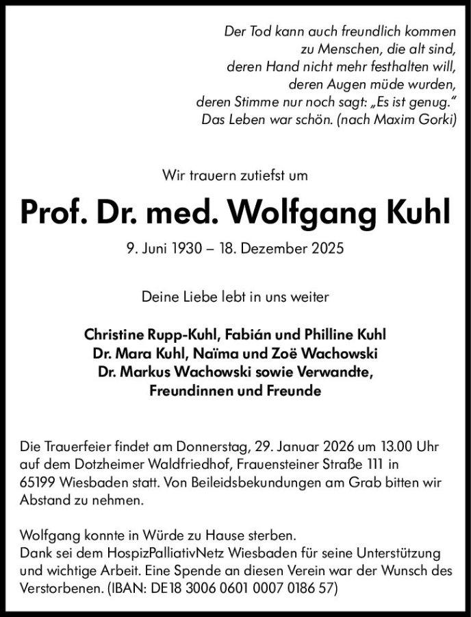 Prof. Dr. med. Wolfgang Kuhlgestorben am 18. Dezember 2025